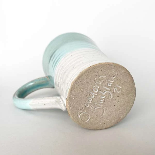 - Quality botanical turquoise stoneware Welsh pottery dipped mug