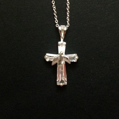 Cross with dove sterling silver pendant and necklace.