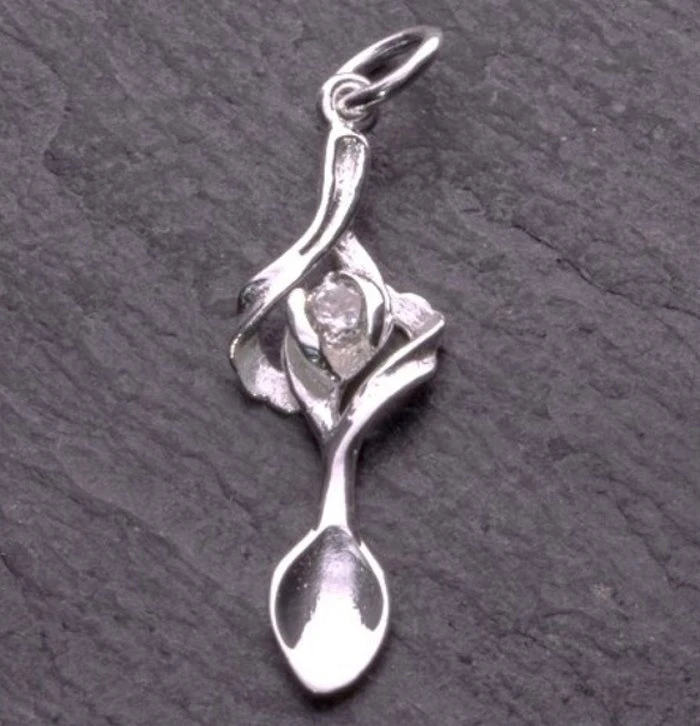 Love spoon necklace with centre gemstone.