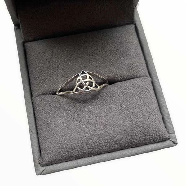 The Trinity Knot is a symbol of three interconnected circles. It’s also known as the Triquetra and represents the Holy Trinity in Christianity – Father, Son, and Holy Spirit. This ring is perfect for anyone who loves to show their faith with an elegant accessory.