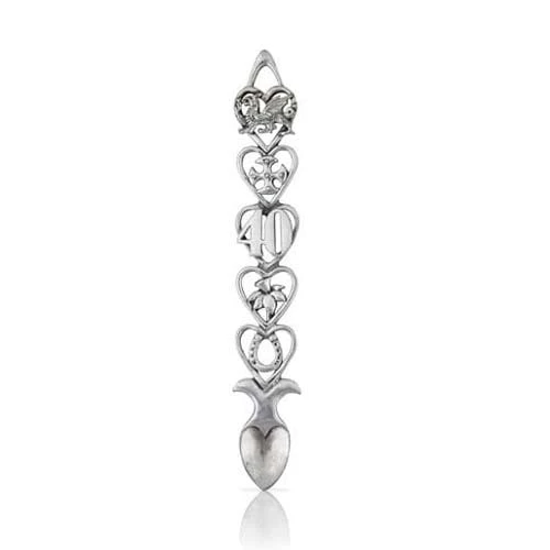 The Pewter Welsh love spoon is the perfect present for a 40th anniversary or birthday. The spoon includes symbols of protection, good luck and love.