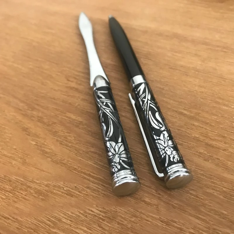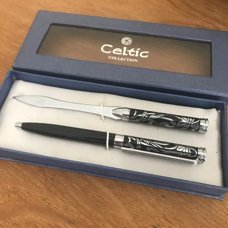 Quality black and silver Welsh daffodil pen and letter opener gift set