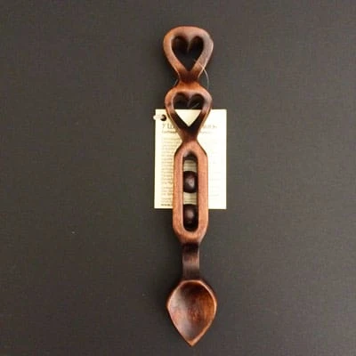 Welsh Love spoon with balls and cage – a symbol representing the number of predicted children the couple will have in the relationship.